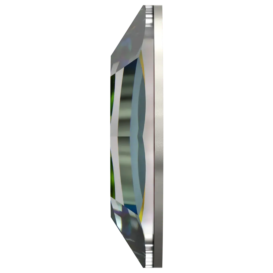 Serinity rhinestones non hotfix Navette (2200) in Crystal Vitrail Medium are flat back crystals that can easily be applied to most surfaces with glue. Serinity Navette shaped crystals are elongated and pointed at both ends, resembling a narrow leaf or an almond. The name "navette" is derived from the French word for "little boat," as the shape of the crystal is reminiscent of a boat's hull. The crystal has a flat top surface and bevelled edges that catch and reflect light, creating a sparkling effect that enhances its overall appearance.