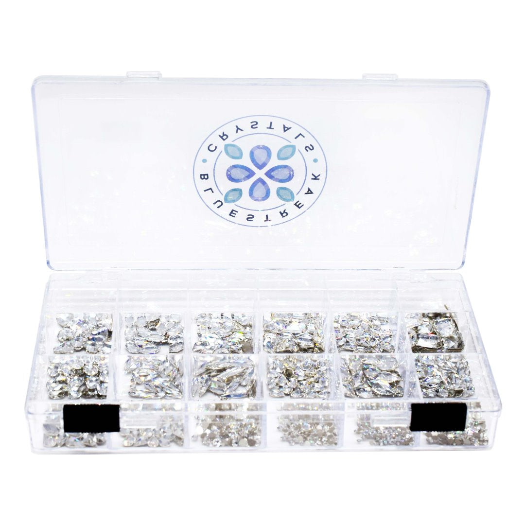 This Mega Mix of over 900 Serinity Flat Back crystals includes a wide range of shapes and sizes in Crystal. Perfect for your adding sparkle to a wide range of segments such as nail art, embellishment, jewellery, bridal, DIY crafting, fashion and theatre.