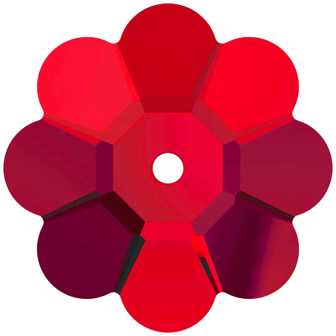 Serinity sew on crystals Daisy Spacer (3700) in Light Siam UNFOILED are loose flat backed crystals that come with a thread hole, enabling the crystals to be sewn onto fabric. Serinity Daisy Spacer sew-on crystals are floral in shape with multiple facets that reflect light in a dazzling way. This crystal is designed with a centre hole that allows it to be easily sewn onto fabric, making it perfect for adding a touch of glamour to clothing, accessories, and other textiles.