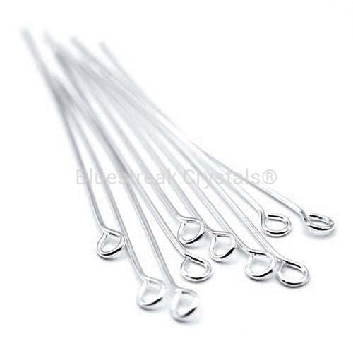 This silver plated eyepin is used to connect beads together in necklaces, bracelets, and other jewellery pieces. It is a thin metal wire with a loop on one end and a straight pin on the other. The loop is used to attach the eyepin to a jump ring or other jewellery component, while the straight pin is used to slide beads onto the eyepin. Once the beads are in place, the straight pin is bent at a 90-degree angle, and the excess wire is cut off. The remaining wire is then shaped into another loop, creating a beaded link that can be connected to other links to create a chain of beads.