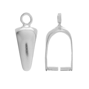 This Wide Pinch bail measuring 16.7x8.2mm made from Sterling Silver (925) is used to attach a pendant or bead to a necklace or other piece of jewellery.