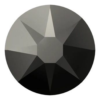 Swarovski hotfix crystals Round (2000 Rose, 2038 Xilion & 2078 Xirius) in Jet Hematite are flat back crystals where the reverse side of the crystal has been pre-coated with a heat-sensitive glue. Jet Hematite is a dark and metallic shade of grey, often with a slight bluish or purplish tint. It has a strong and commanding presence, with a deep and rich quality that can be both elegant and edgy. The facets of the crystal enhances its metallic sheen, making it a popular choice in jewellery and decorative objects.