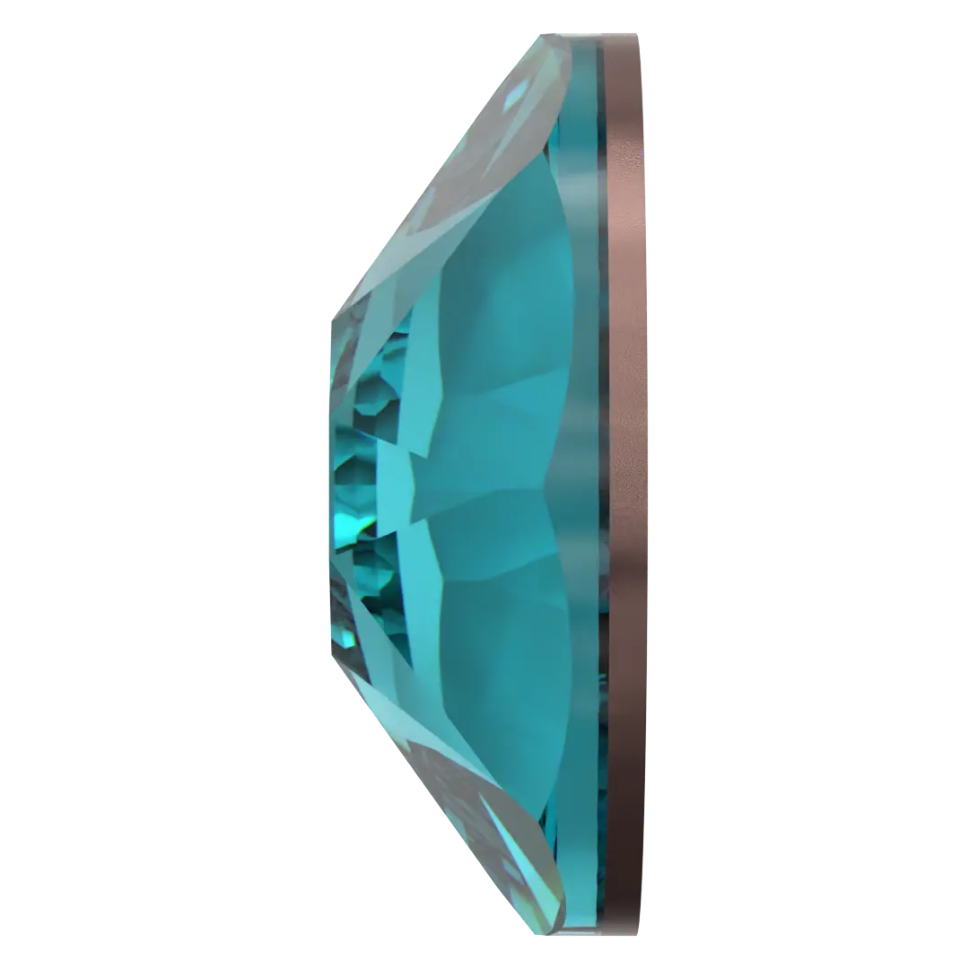 Swarovski rhinestones non hotfix Round (2000 Rose, 2058 Xilion & 2088 Xirius) in Blue Zircon are flat back crystals that can easily be applied to most surfaces with glue. Blue Zircon is a vibrant and rich shade of blue with a touch of green in its undertones. The colour is reminiscent of the stunning blue waters of the Caribbean and gives off a sense of tranquillity, calmness, and stability. Blue Zircon is often associated with December birthstones and is known for its clarity and brilliance, making it a popular choice for jewellery.