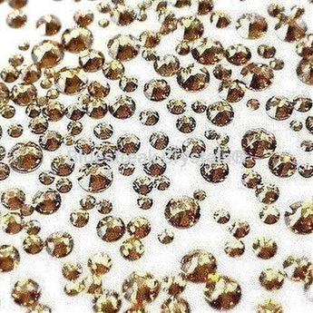Swarovski rhinestones non hotfix Round (2000 Rose, 2058 Xilion & 2088 Xirius) in Crystal Golden Shadow are flat back crystals that can easily be applied to most surfaces with glue. Crystal Golden Shadow is a specific colour variant of Swarovski crystals. The colour is a very light champagne hue with hints of pale gold, that when combined with the transparency and brilliance of Swarovski crystals, the result is a warm, shimmering effect that can add sophistication and elegance to any piece of jewellery or design.