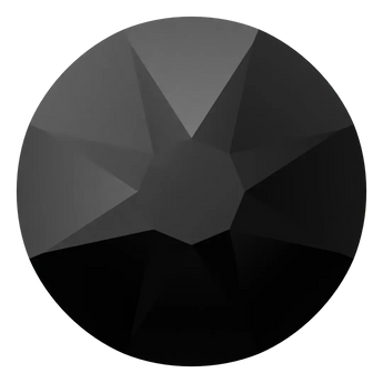 Swarovski rhinestones non hotfix Round (2000 Rose, 2058 Xilion & 2088 Xirius) in Jet UNFOILED are flat back crystals that can easily be applied to most surfaces with glue. Jet is a black colour that is often associated with darkness, mystery, sophistication, and elegance. It is the absence of all visible light and is the darkest possible colour. Jet can have a powerful and dramatic impact when used in design, fashion, and other creative fields. It can also be a symbol of mourning, as it is traditionally worn at funerals in many cultures. Unfoiled (UF) crystals have no foiling on the back so you can see right through the crystal to surface beneath.