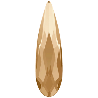 Swarovski hotfix crystals Raindrop (2304) in Crystal Golden Shadow are flat back crystals where the reverse side of the crystal has been pre-coated with a heat-sensitive glue. Swarovski Raindrop shaped crystals are elongated and shaped just like raindrop, resembling a raindrop falling from the sky. They have a faceted surface that creates a multi-dimensional effect, giving them a sparkling and radiant appearance. The top of the crystal is typically round, while the bottom tapers to a point, creating a dramatic and eye-catching design.