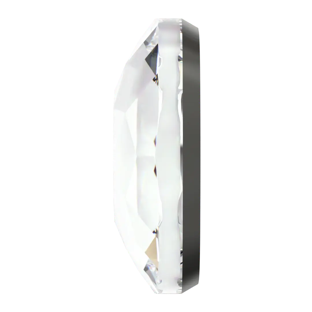 Swarovski hotfix crystals Cushion (2471) in Crystal are flat back crystals where the reverse side of the crystal has been pre-coated with a heat-sensitive glue. Swarovski Cushion shaped crystals are characterized by their square shape with rounded corners, giving them a cushion-like appearance. They have a flat top with multiple surrounding facets, creating a brilliant sparkle and shine. The facets are arranged in a specific pattern to maximize the reflection of light.