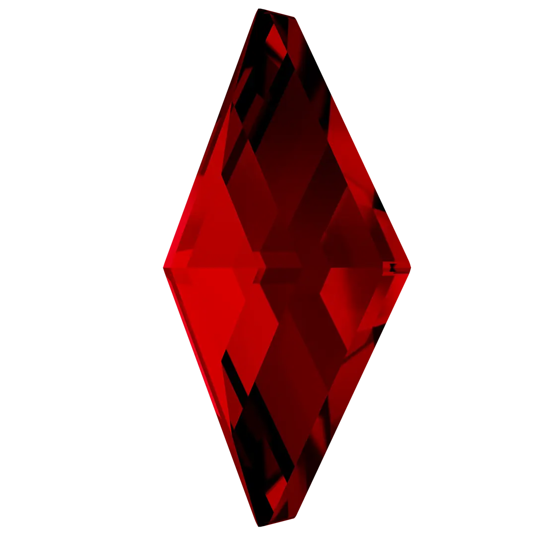 Swarovski rhinestones non hotfix Diamond (2773) in Light Siam are flat back crystals that can easily be applied to most surfaces with glue. Swarovski diamond shaped crystals are characterized by their symmetrical and precise diamond shape. They have a pointed top and the facets are arranged in a manner that creates a striking and sparkling effect when light hits them.