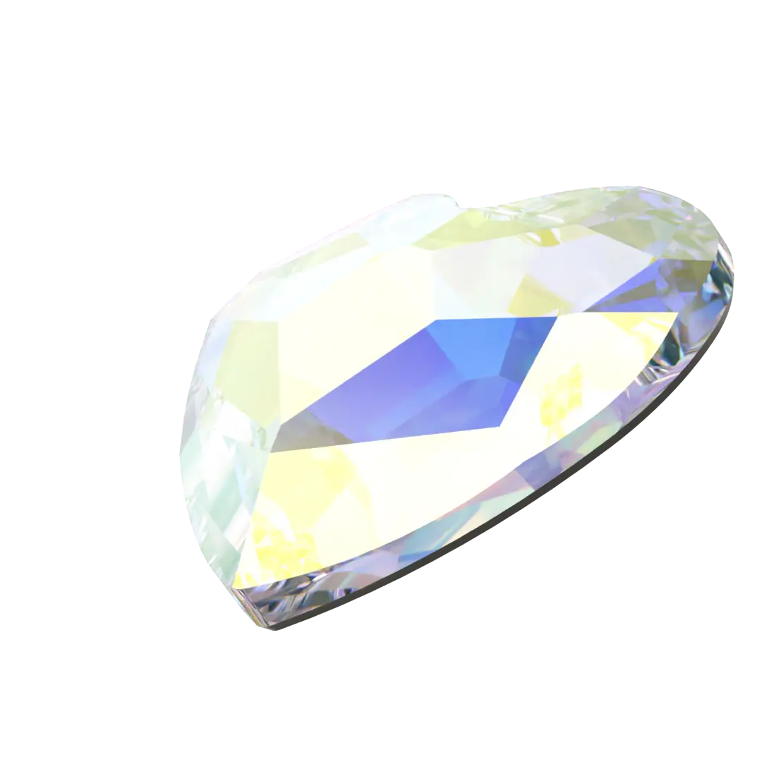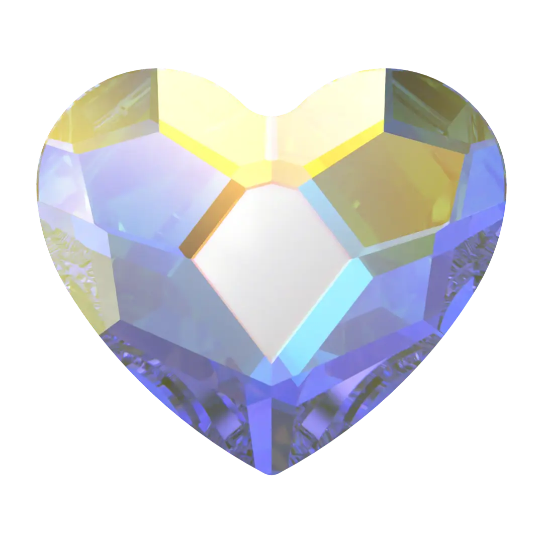 Swarovski rhinestones non hotfix Heart (2808) in Crystal AB are flat back crystals that can easily be applied to most surfaces with glue. Swarovski Heart shaped crystals are not only classic and timeless, but their symmetrical faceted crystal cut on the face of the heart also creates a fantastic shine that radiates from every angle, capturing the attention of anyone who beholds them.