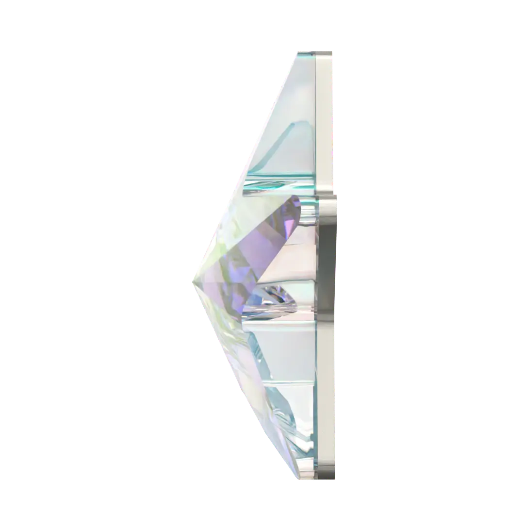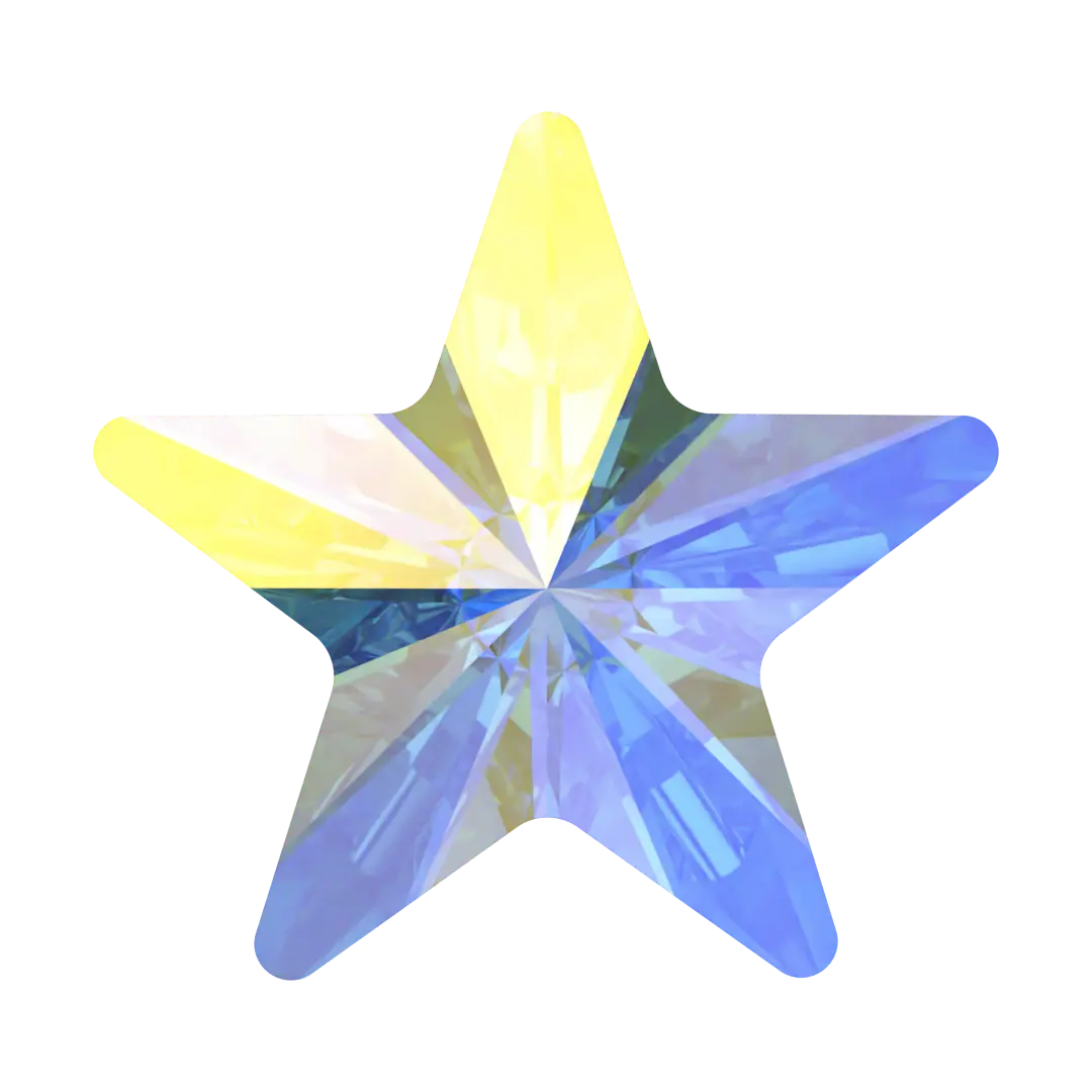 Swarovski hotfix crystals Rivoli Star (2816) in Crystal AB are flat back crystals where the reverse side of the crystal has been pre-coated with a heat-sensitive glue. Swarovski star shaped crystals feature a central point with multiple facets extending outwards in a symmetrical pattern, to create a stunning star-like effect.