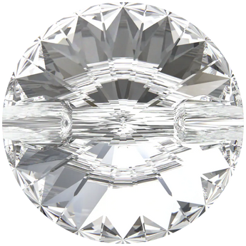 Swarovski sew on crystals Rivoli Button (3015) in Crystal are loose flat backed crystals that come with a thread hole, enabling the crystals to be sewn onto fabric. Swarovski Rivoli Button crystals are cut glass stones that have specifically cut facets which lead to a point. They are foiled on the underside of the crystal to reflect the light and enhance the colour of the stone.