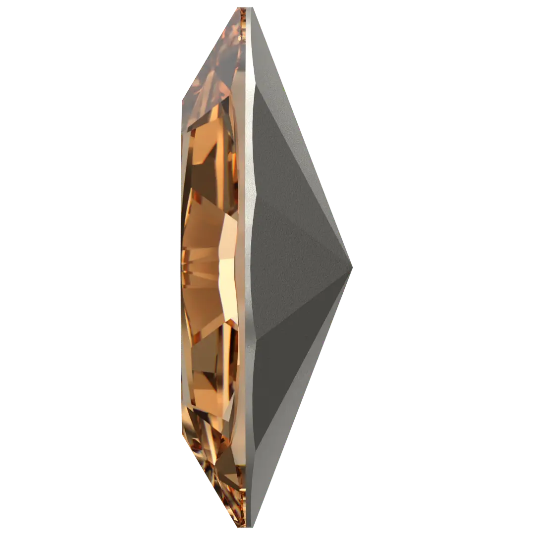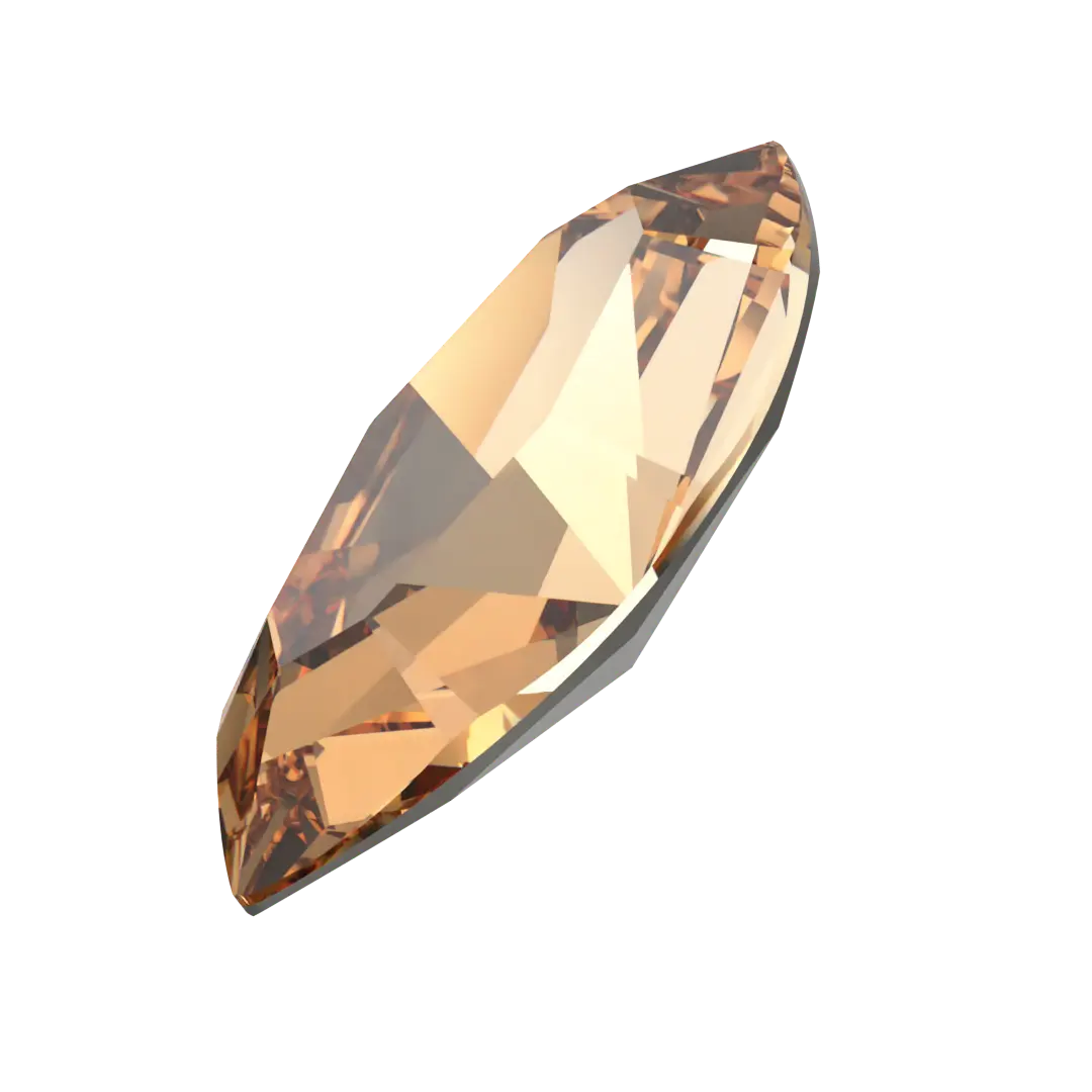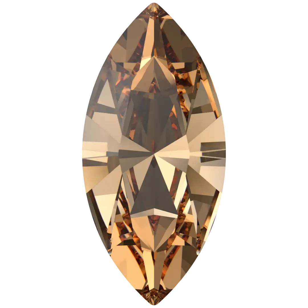 Swarovski fancy stones Xilion Navette (4228) in Light Colorado Topaz are multi faceted pointed back crystals that have no thread hole and can be applied to fabric or to create jewellery designs using metal settings or in pre-made cavities. Swarovski Xilion Navette shaped stone features a unique, elongated oval shape with pointed ends. The navette cut is designed with a series of precisely placed facets that reflect and refract light, creating a dazzling play of colours and a sparkling effect.