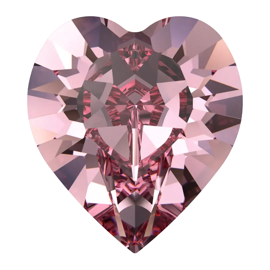 Swarovski fancy stones Xilion Heart (4884) in Light Rose are multi faceted pointed back crystals that have no thread hole and can be applied to fabric or to create jewellery designs using metal settings or in pre-made cavities. Swarovski Xilion Heart is a crystal component that puts a contemporary spin on the traditional heart shape. It features a distinct cut that alternates between diamond-shaped and triangular facets of varying sizes, resulting in a dazzling sparkle and shine that can be appreciated from any angle.