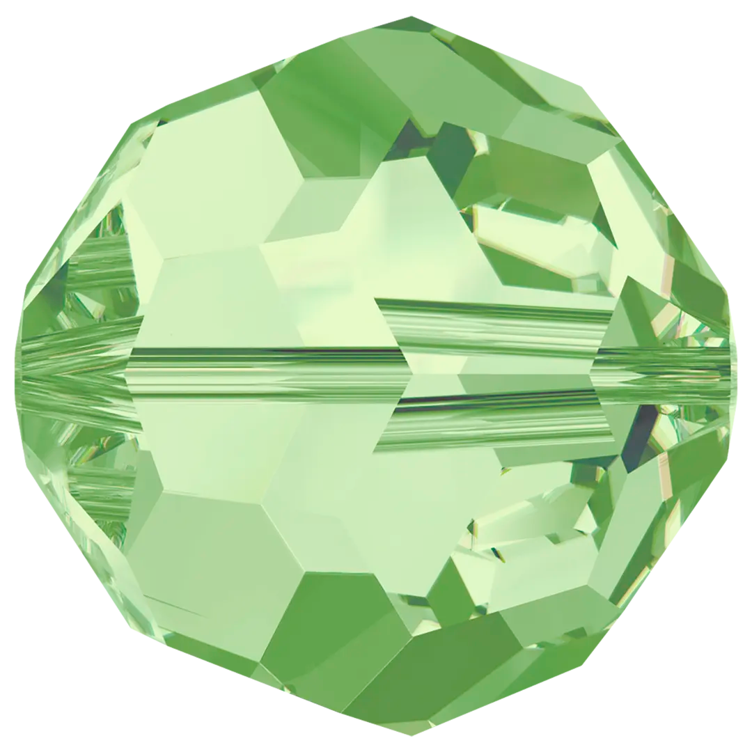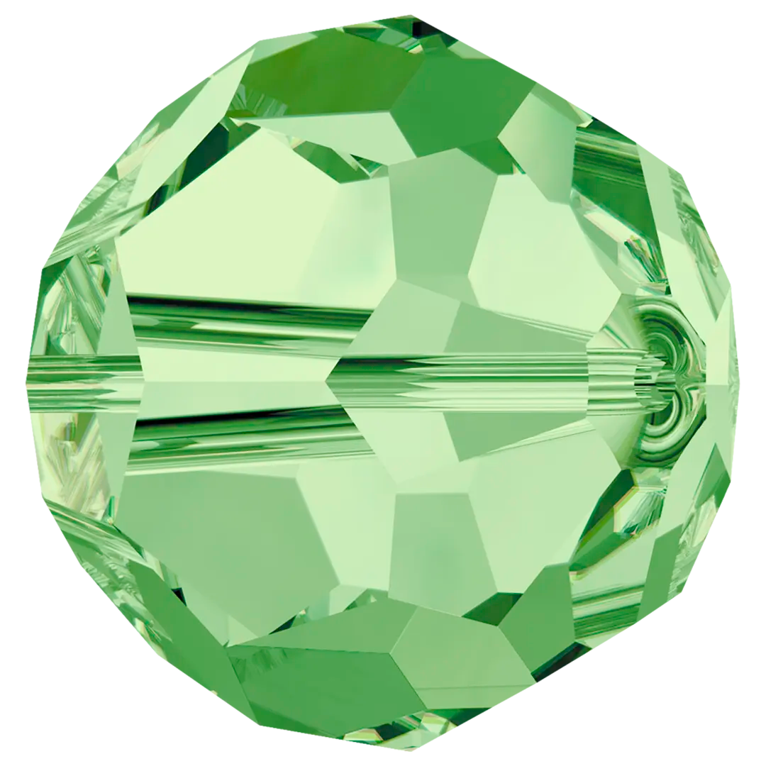 Swarovski crystal beads Round (5000) in Peridot have a smooth thread hole and are multi-faceted to reflect the light, making them perfect to create bespoke designs. These Round beads are shaped into a uniform sphere and are highly sought after for their versatility, wide range of sizes, and availability in an extensive colour palette. The many facets of round beads create a sparkling effect that reflects light from various angles, making them ideal for adding shine and dimension to jewellery and embellishment projects.