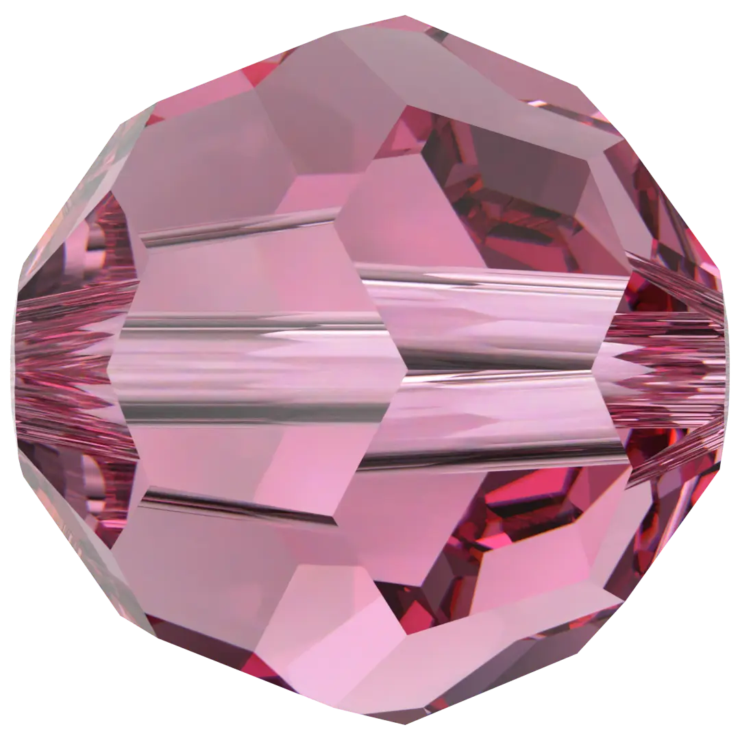 Swarovski crystal beads Round (5000) in Rose have a smooth thread hole and are multi-faceted to reflect the light, making them perfect to create bespoke designs. These Round beads are shaped into a uniform sphere and are highly sought after for their versatility, wide range of sizes, and availability in an extensive colour palette. The many facets of round beads create a sparkling effect that reflects light from various angles, making them ideal for adding shine and dimension to jewellery and embellishment projects.