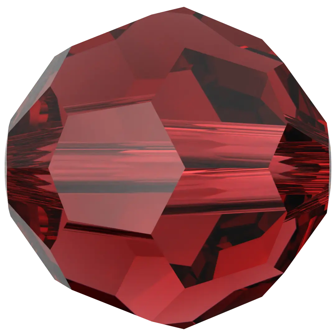 Swarovski crystal beads Round (5000) in Siam have a smooth thread hole and are multi-faceted to reflect the light, making them perfect to create bespoke designs. These Round beads are shaped into a uniform sphere and are highly sought after for their versatility, wide range of sizes, and availability in an extensive colour palette. The many facets of round beads create a sparkling effect that reflects light from various angles, making them ideal for adding shine and dimension to jewellery and embellishment projects.