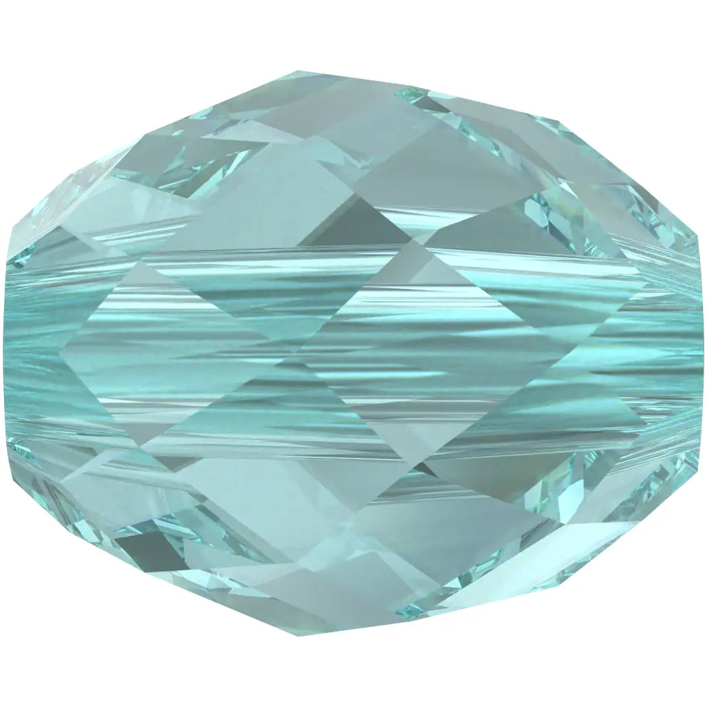 Swarovski crystal beads Olive Briolette (5044) in Light Turquoise have a smooth thread hole and are multi-faceted to reflect the light, making them perfect to create bespoke designs. Swarovski Olive Briolette bead is a crystal element that boasts a unique teardrop shape, featuring a narrow top and bottom with a wider midsection. The bead's intricate faceting is specially designed to create a subtle shimmer and sparkle, infusing jewellery designs with a touch of refinement and sophistication.