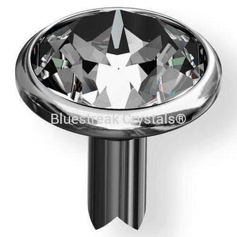 Swarovski Rivets (53005) SS34 in Gold Brushed are chatons that are encased in a metal setting which has a post at the back so that it can be attached to material such as leather or fabrics. The rivet consist of two pieces: the rivet which is a crystal in a metal casing and the back part. The rivet has a small metal post that is inserted into the base material and secures to the back part on the other side of the material. When the rivet is inserted through the base material it connects with the back part, to create a secure attachment.