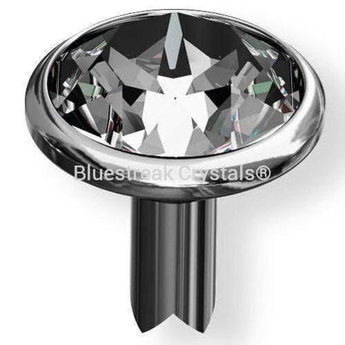Swarovski Rivets (53006) SS39 in Gold Brushed are chatons that are encased in a metal setting which has a post at the back so that it can be attached to material such as leather or fabrics. The rivet consist of two pieces: the rivet which is a crystal in a metal casing and the back part. The rivet has a small metal post that is inserted into the base material and secures to the back part on the other side of the material. When the rivet is inserted through the base material it connects with the back part, to create a secure attachment.