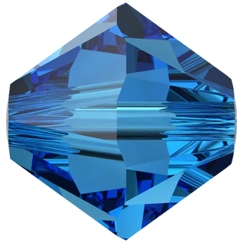 Swarovski crystal beads Xilion Bicone (5328) in Capri Blue have a smooth thread hole and are multi-faceted to reflect the light, making them perfect to create bespoke designs. Swarovski Bicone beads are cylindrical in shape and taper at both ends to form a bi-conical shape. The tapered multi-faceted shape of bicone beads adds texture, dimension and sparkle to jewellery and bespoke designs.