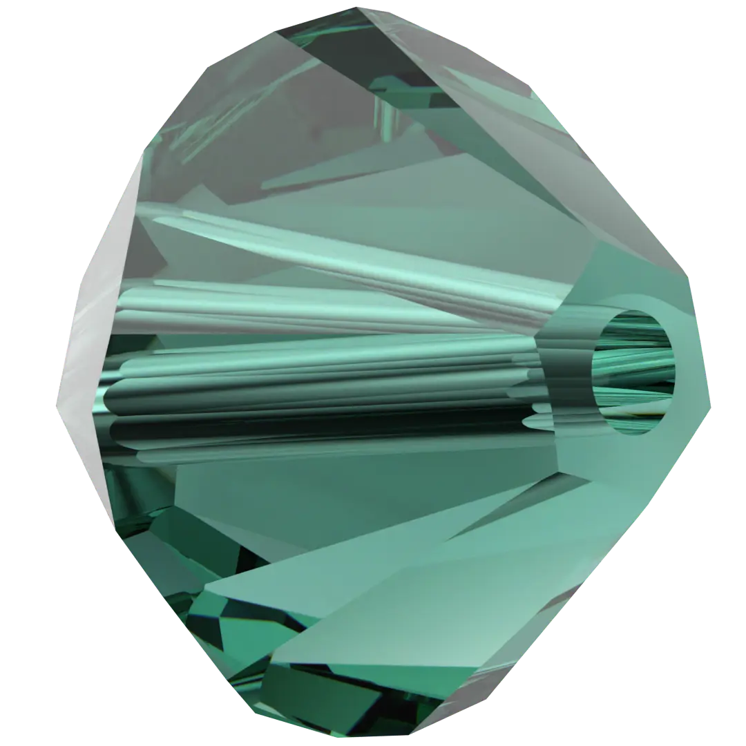 Swarovski crystal beads Xilion Bicone (5328) in Emerald have a smooth thread hole and are multi-faceted to reflect the light, making them perfect to create bespoke designs. Swarovski Bicone beads are cylindrical in shape and taper at both ends to form a bi-conical shape. The tapered multi-faceted shape of bicone beads adds texture, dimension and sparkle to jewellery and bespoke designs.