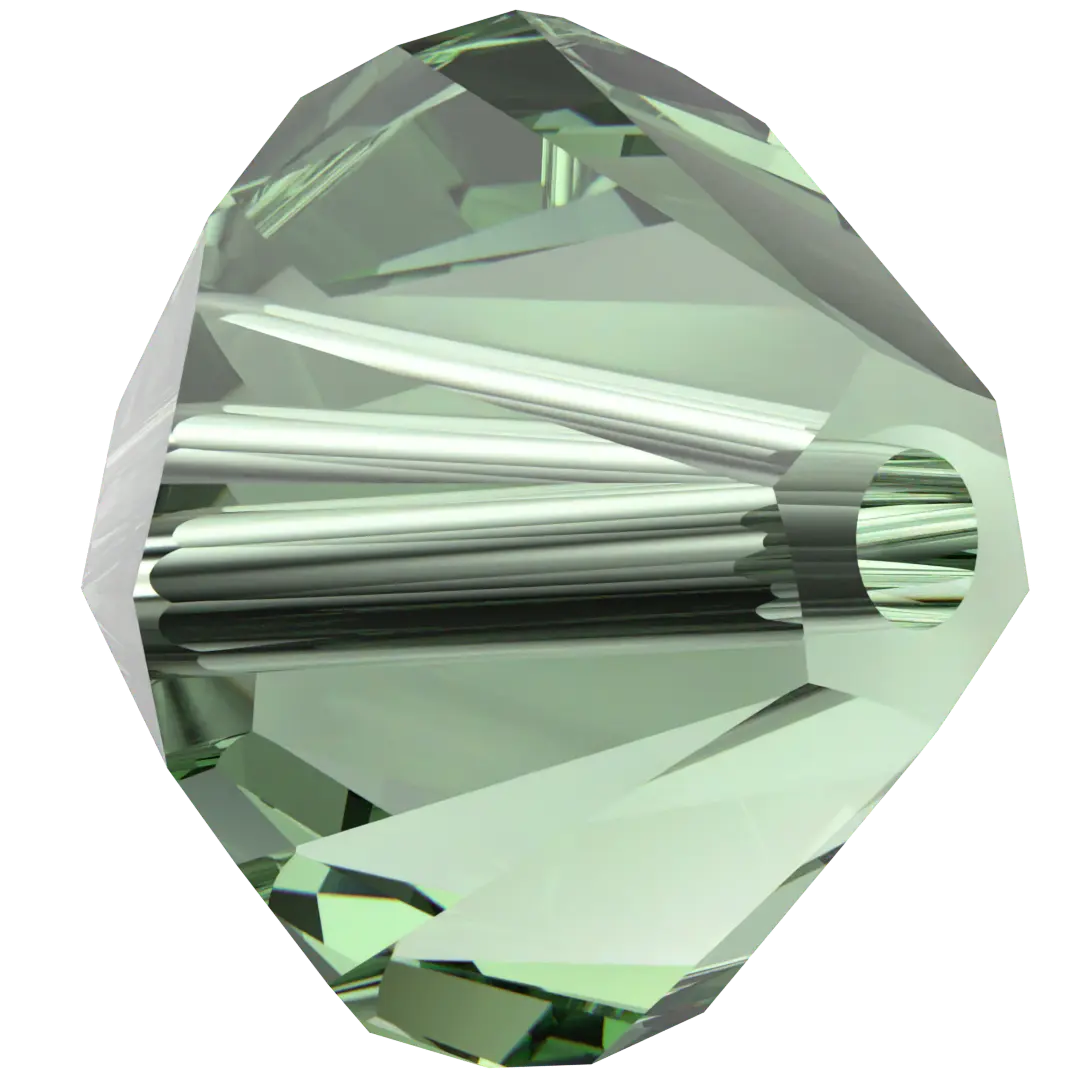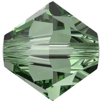 Swarovski crystal beads Xilion Bicone (5328) in Erinite have a smooth thread hole and are multi-faceted to reflect the light, making them perfect to create bespoke designs. Swarovski Bicone beads are cylindrical in shape and taper at both ends to form a bi-conical shape. The tapered multi-faceted shape of bicone beads adds texture, dimension and sparkle to jewellery and bespoke designs.