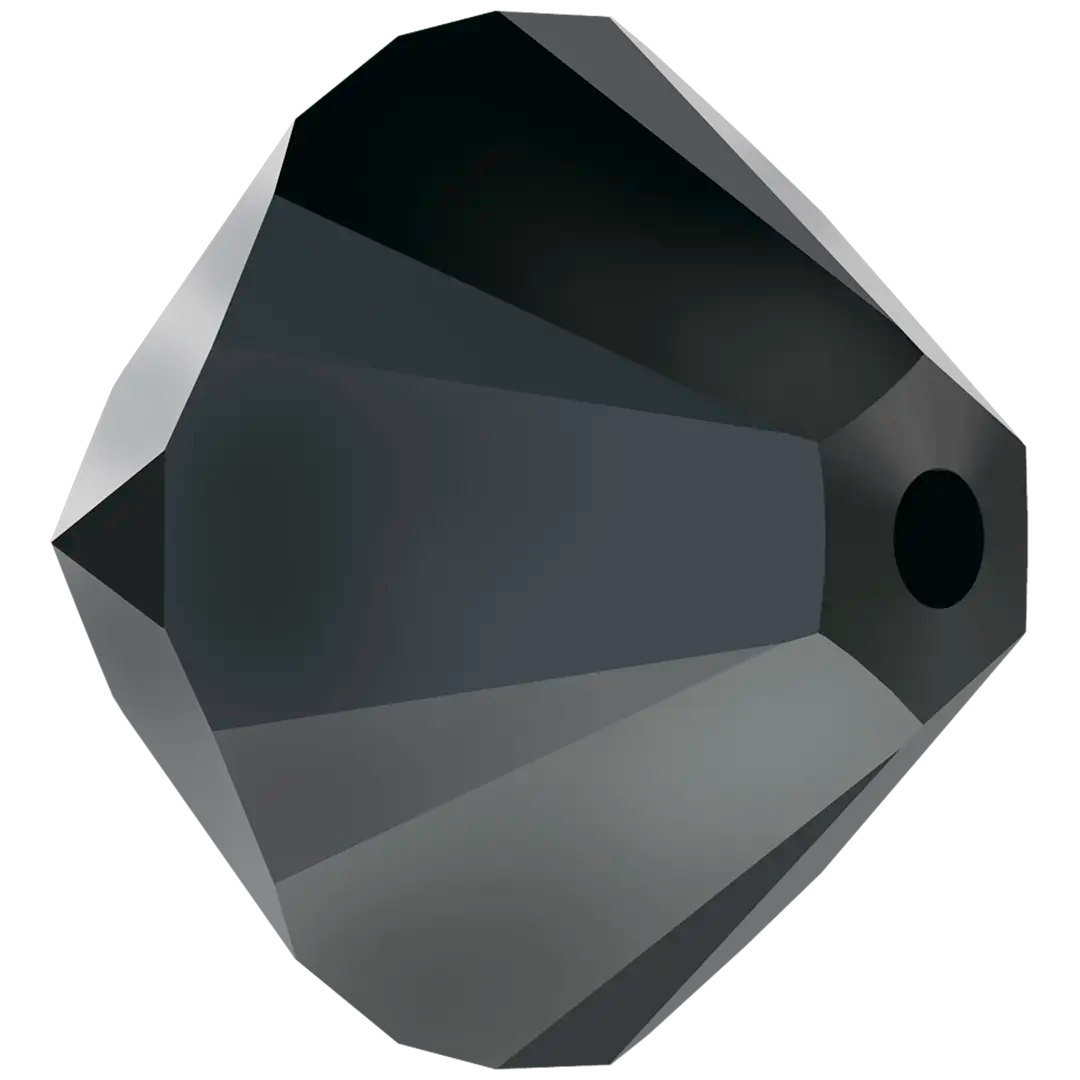 Swarovski crystal beads Xilion Bicone (5328) in Jet Hematite 2X have a smooth thread hole and are multi-faceted to reflect the light, making them perfect to create bespoke designs. Swarovski Bicone beads are cylindrical in shape and taper at both ends to form a bi-conical shape. The tapered multi-faceted shape of bicone beads adds texture, dimension and sparkle to jewellery and bespoke designs.