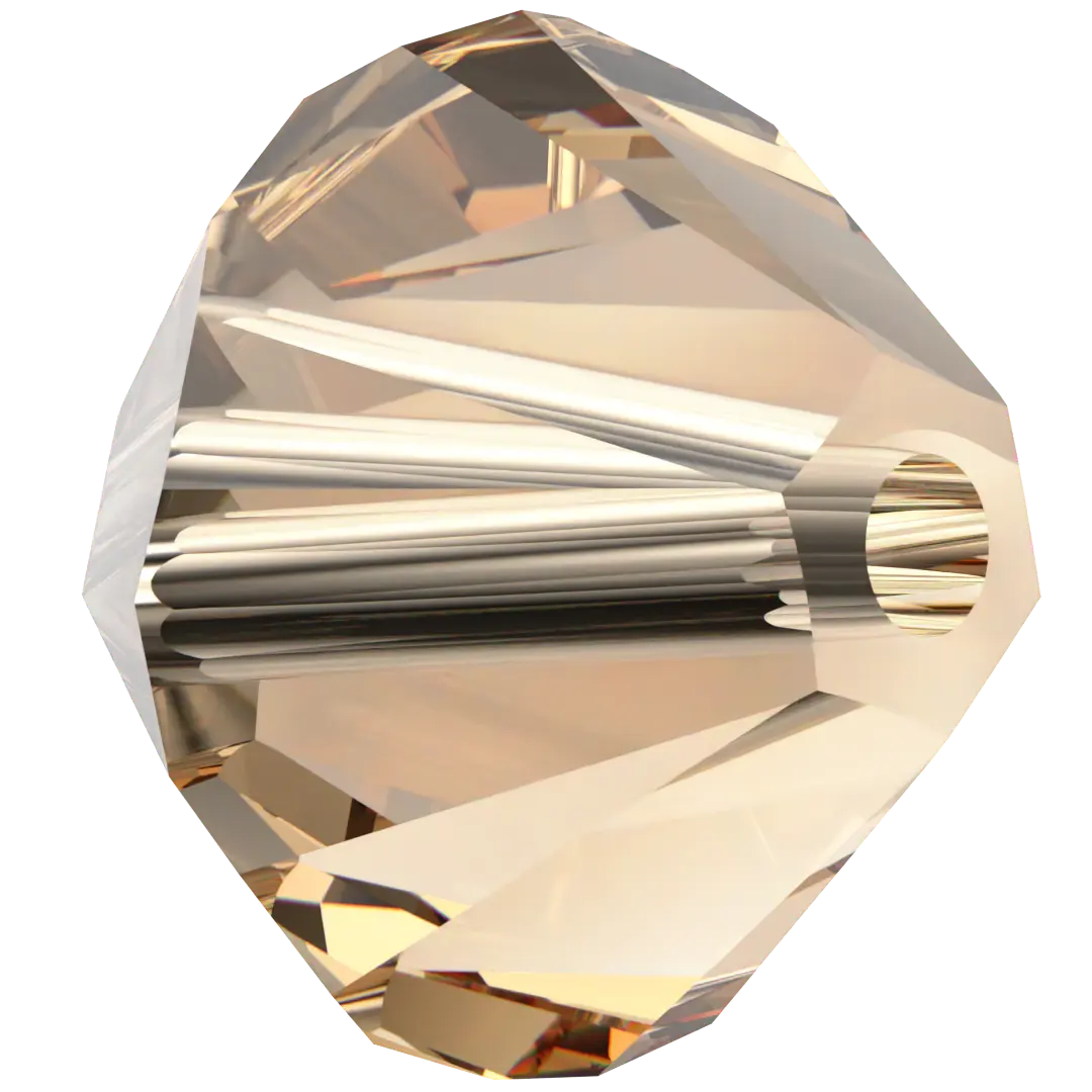 Swarovski crystal beads Xilion Bicone (5328) in Light Colorado Topaz have a smooth thread hole and are multi-faceted to reflect the light, making them perfect to create bespoke designs. Swarovski Bicone beads are cylindrical in shape and taper at both ends to form a bi-conical shape. The tapered multi-faceted shape of bicone beads adds texture, dimension and sparkle to jewellery and bespoke designs.