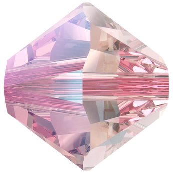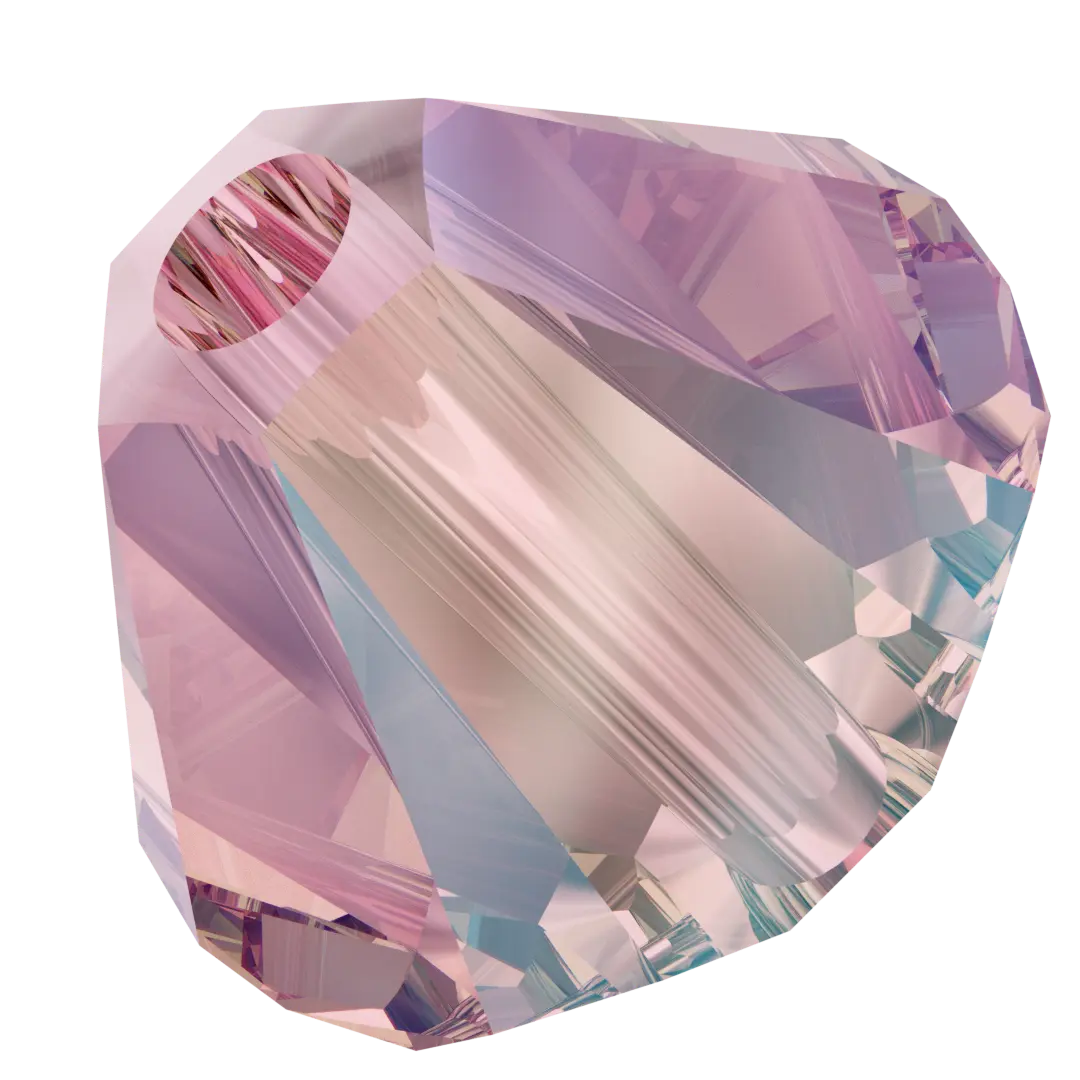 Swarovski crystal beads Xilion Bicone (5328) in Light Rose Shimmer have a smooth thread hole and are multi-faceted to reflect the light, making them perfect to create bespoke designs. Swarovski Bicone beads are cylindrical in shape and taper at both ends to form a bi-conical shape. The tapered multi-faceted shape of bicone beads adds texture, dimension and sparkle to jewellery and bespoke designs.