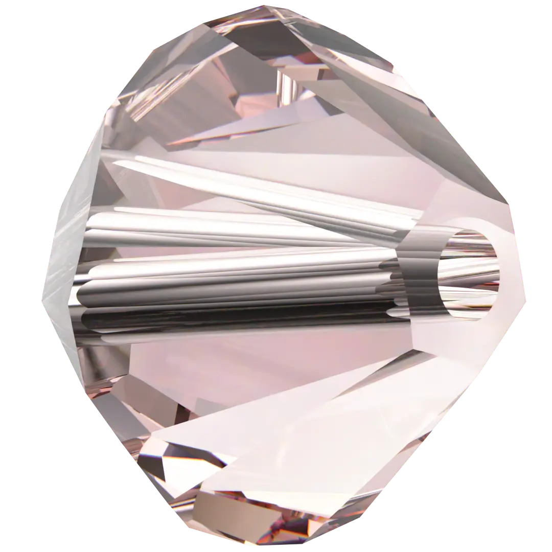Swarovski crystal beads Xilion Bicone (5328) in Vintage Rose have a smooth thread hole and are multi-faceted to reflect the light, making them perfect to create bespoke designs. Swarovski Bicone beads are cylindrical in shape and taper at both ends to form a bi-conical shape. The tapered multi-faceted shape of bicone beads adds texture, dimension and sparkle to jewellery and bespoke designs.
