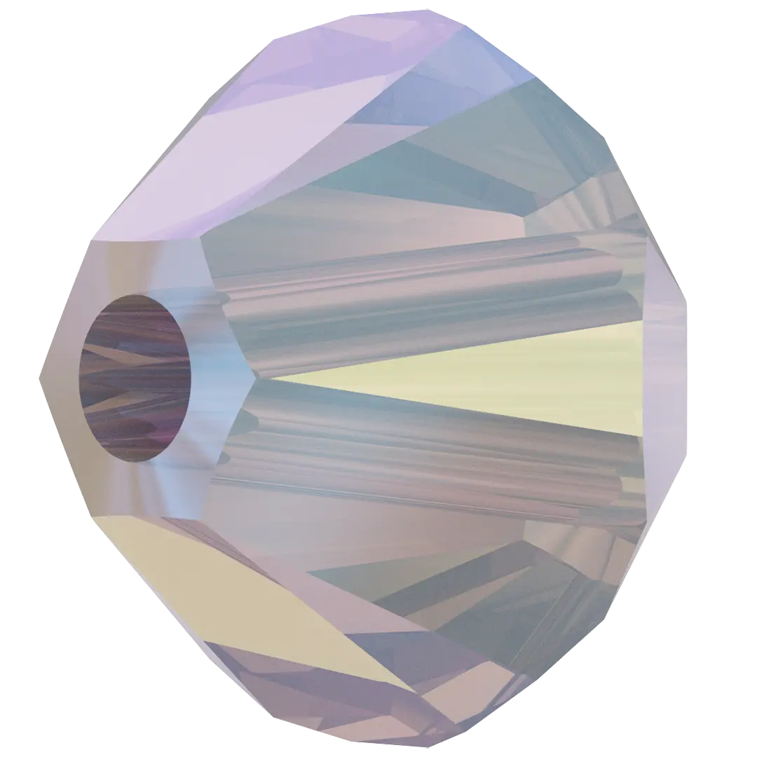 Swarovski crystal beads Xilion Bicone (5328) in White Opal Shimmer 2X have a smooth thread hole and are multi-faceted to reflect the light, making them perfect to create bespoke designs. Swarovski Bicone beads are cylindrical in shape and taper at both ends to form a bi-conical shape. The tapered multi-faceted shape of bicone beads adds texture, dimension and sparkle to jewellery and bespoke designs.