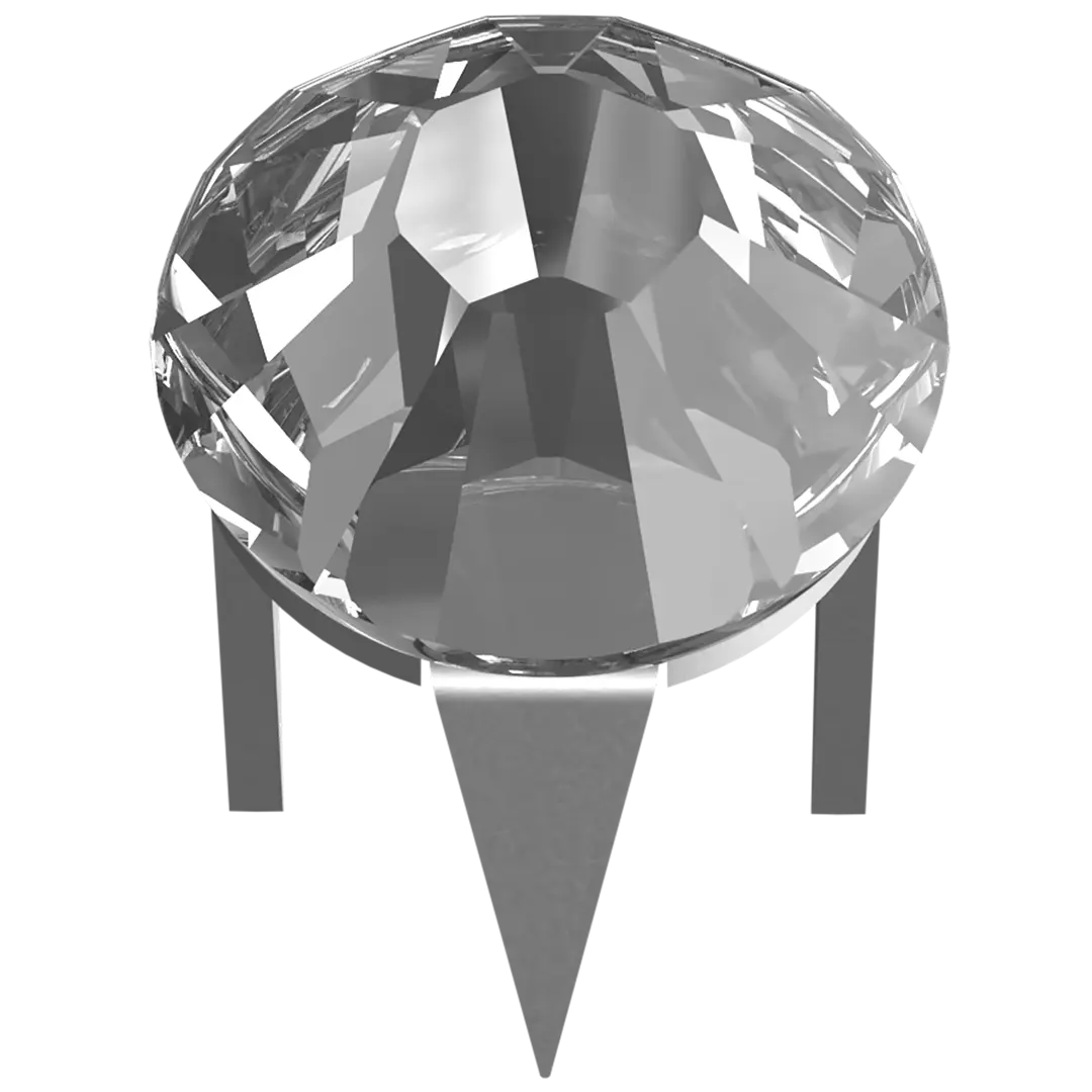 Swarovski Rose Pins (53301) size SS10 in Stainless Steel are flat back crystals that are encased in a metal setting. All you need to do is push the pins through your chosen fabric for a long lasting hold, no glue required.
