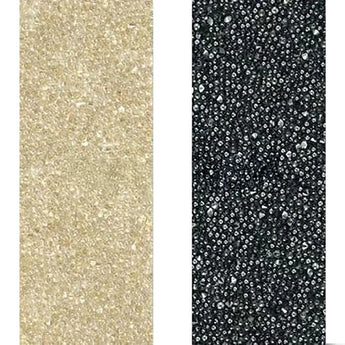 Crystal Fabric Bandings consists of a carrier material that is completely covered with millions of tiny cut and uncut crystals. Depending on the colour and surface of the carrier material, Crystal Fabric with transparent film changes its look dramatically. Crystal Fabric on a black film creates a deep, mysteriously soft gleam, dressed up with a very alluring sparkle.