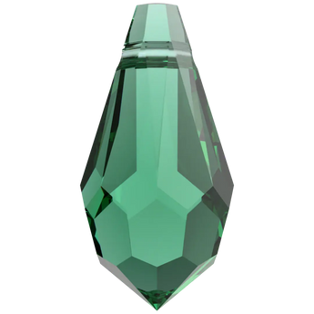Swarovski pendants Teardrop (6000) in Emerald are multi faceted crystals with a thread hole at the top enabling them to be attached to a chain or finding to create a piece of jewellery. Swarovski Teardrop shaped crystals have a distinctive teardrop shape. They have a pointed top and a rounded bottom with facets arranged in a symmetrical pattern, which create a dazzling play of light and reflection.