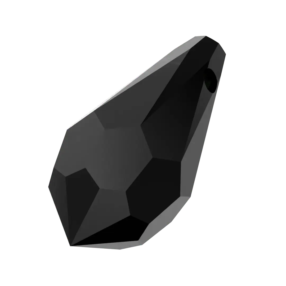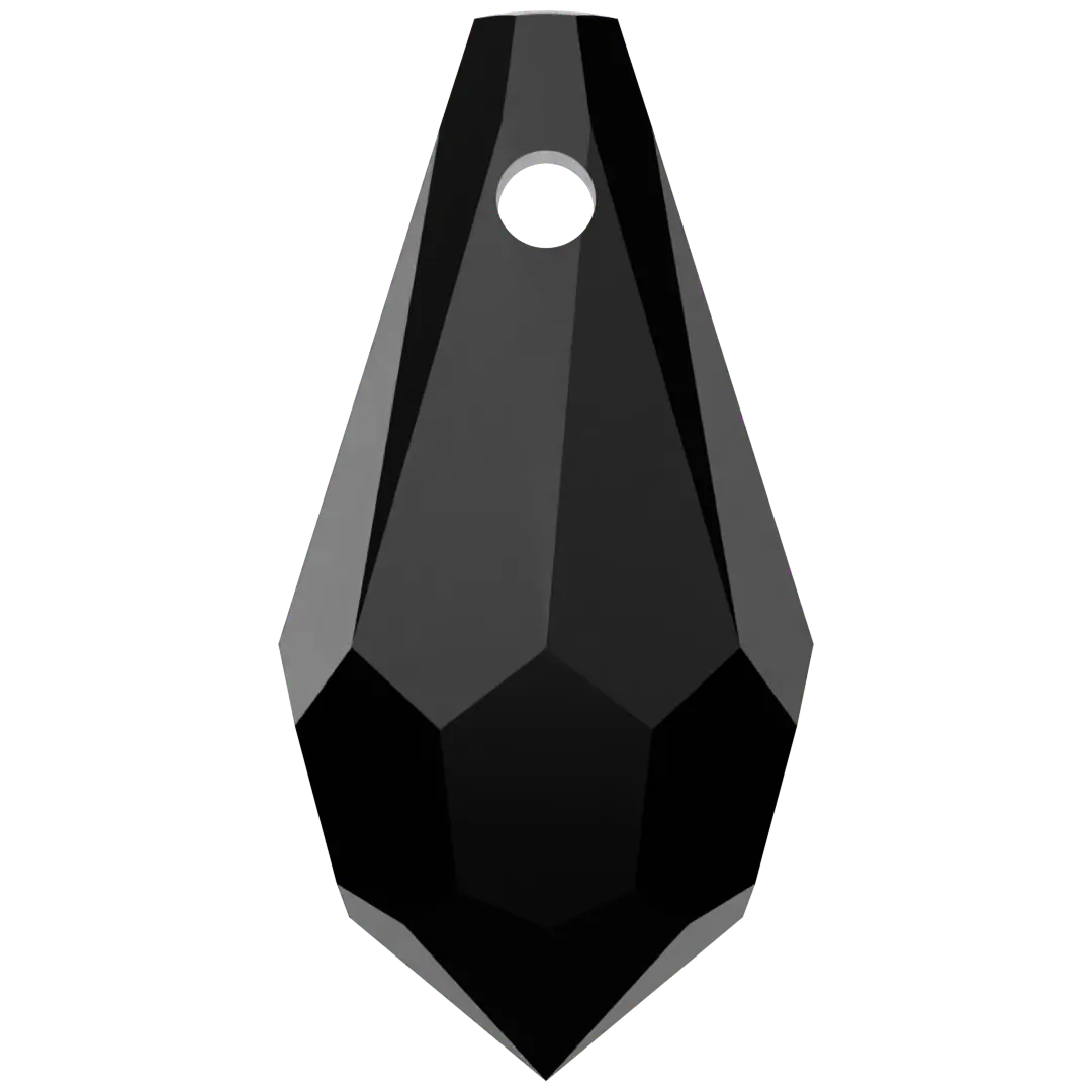 Swarovski pendants Teardrop (6000) in Jet are multi faceted crystals with a thread hole at the top enabling them to be attached to a chain or finding to create a piece of jewellery. Swarovski Teardrop shaped crystals have a distinctive teardrop shape. They have a pointed top and a rounded bottom with facets arranged in a symmetrical pattern, which create a dazzling play of light and reflection.
