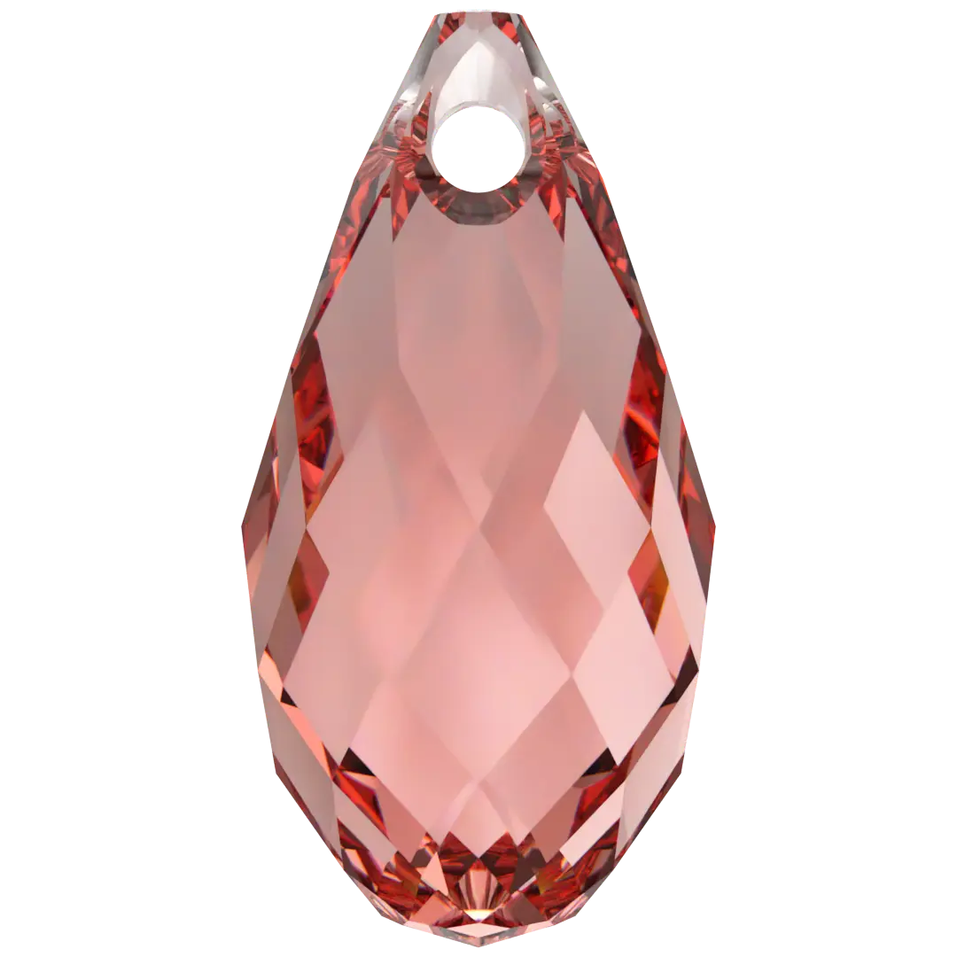 Swarovski pendants Briolette (6010) in Rose Peach are multi faceted crystals with a thread hole at the top enabling them to be attached to a chain or finding to create a piece of jewellery. Swarovski Briolette pendants are designed with a unique teardrop shape that is expertly cut using the briolette technique. The briolette cut involves shaping the crystal into a series of symmetrical, triangular or diamond-shaped facets that reflect light brilliantly from every angle. This cut gives the crystal a stunning and sparkling appearance that is sure to catch the eye.