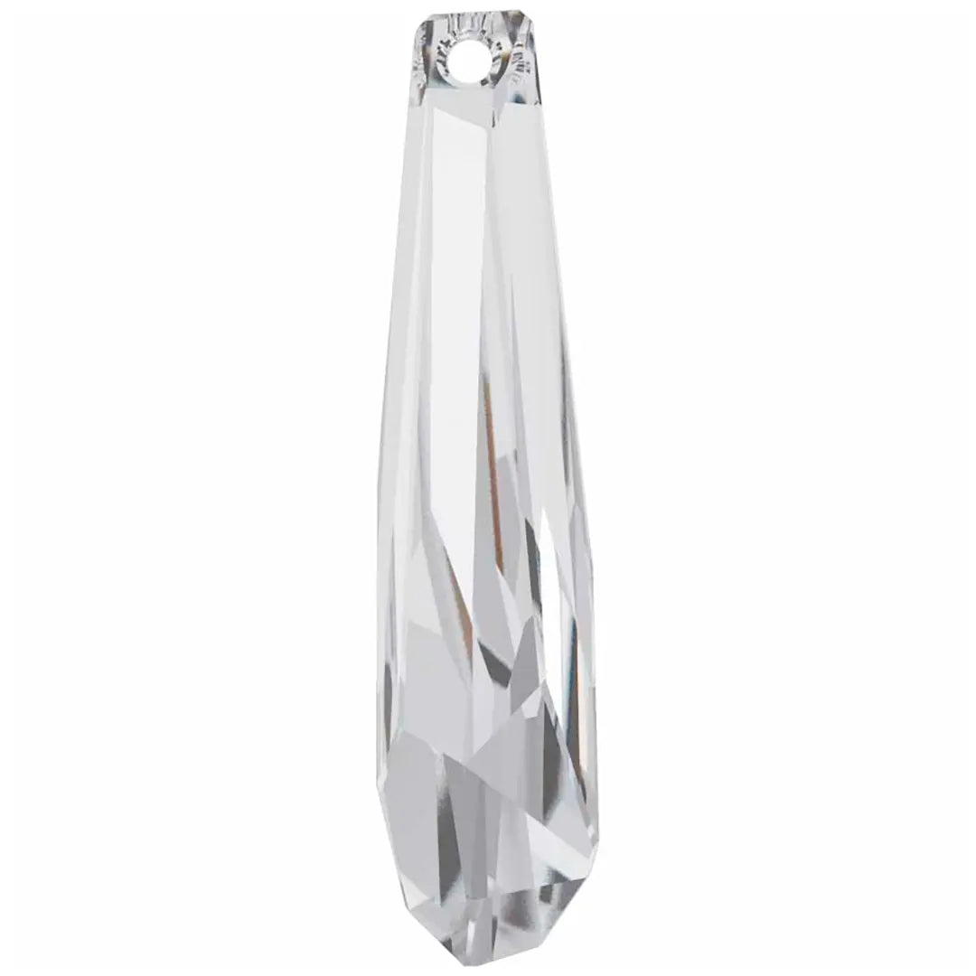 Swarovski pendants Crystalactite (6017/G) in Crystal are multi faceted crystals with a thread hole at the top enabling them to be attached to a chain or finding to create a piece of jewellery. Swarovski Crystalactite pendant is a striking pendant inspired by icy stalactites and co-designed with French fashion house Maison Margiela. The pendant's irregular shape and alternating matte and shiny facets create a mesmerizing look reminiscent of natural ice sculptures.