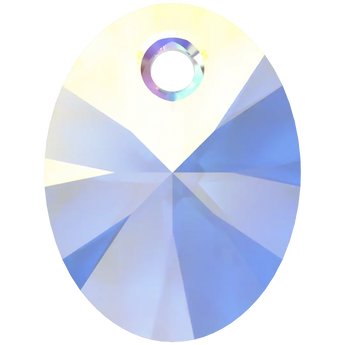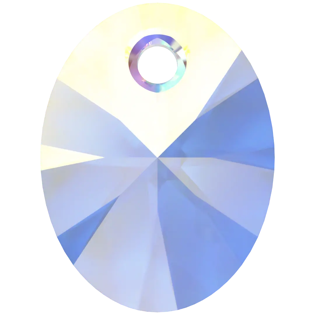 Swarovski pendants Xilion Oval (6028) in Crystal AB are multi faceted crystals with a thread hole at the top enabling them to be attached to a chain or finding to create a piece of jewellery. Swarovski Xilion Oval shaped pendant features an elongated oval shape with a unique faceting pattern. The Xilion cut has alternating large and small facets that create a sparkling and radiant effect, maximizing the reflection of light and colour.