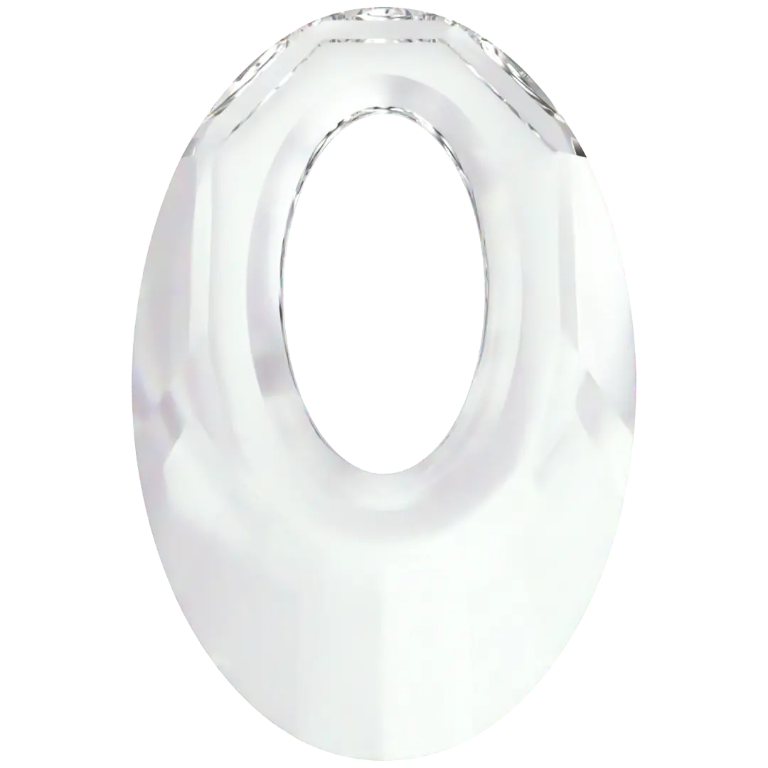 Swarovski pendants Helios (6040) in Crystal are multi faceted crystals with a thread hole at the top enabling them to be attached to a chain or finding to create a piece of jewellery. Swarovski Helios shaped pendant features a modern and bold design that is perfect for contemporary fashion pieces. The oval-shaped hole in the centre adds to its versatility, allowing for various applications, including threading heavy chains. Combining it with leather or cord also creates luxurious yet accessible looks with a progressive feel. The pendant's name is inspired by the Greek Sun God, Helios, which is reflected in the delicate sunray effect of its faceting, creating a stunning play of light that adds a touch of radiance to any design.