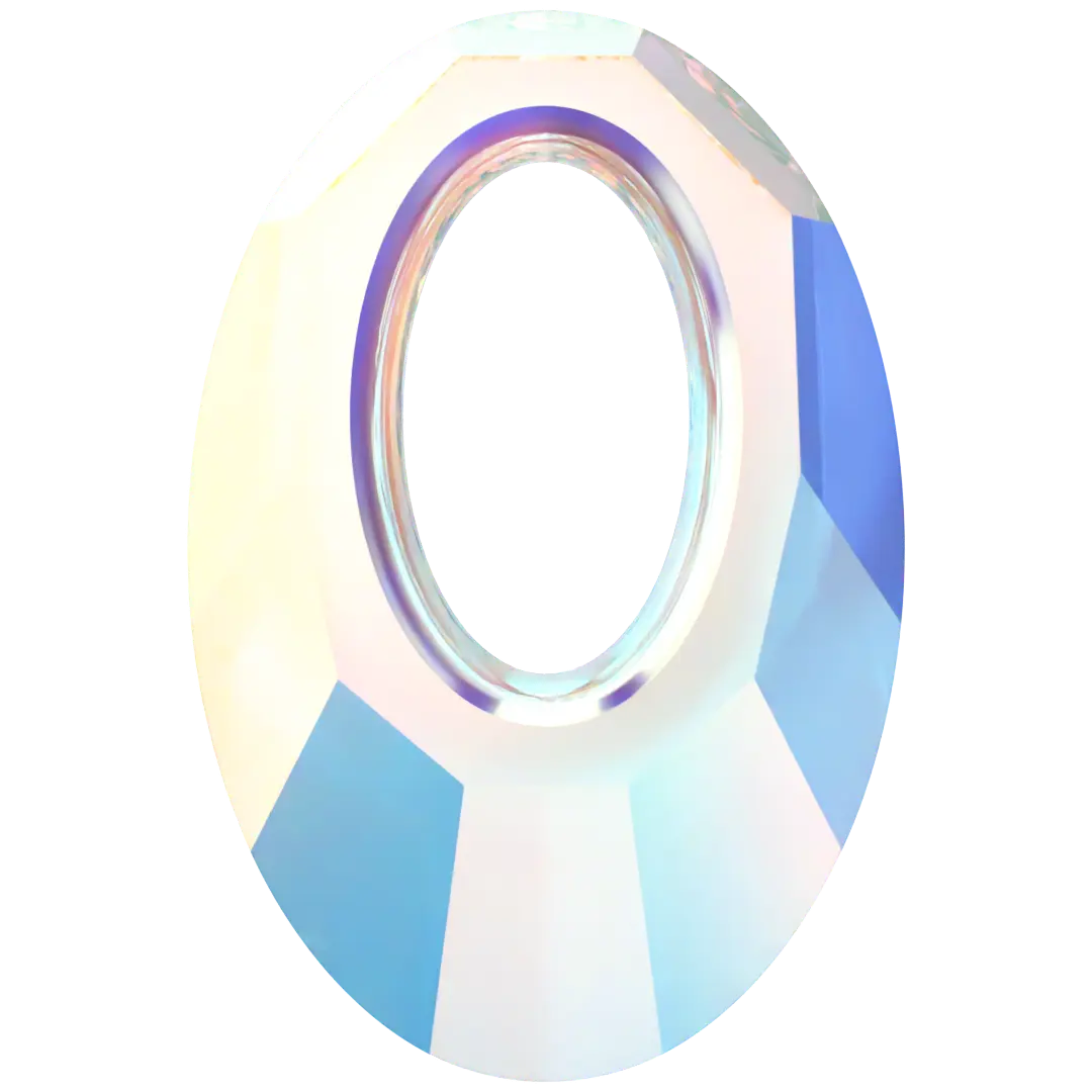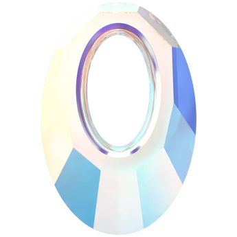 Swarovski pendants Helios (6040) in Crystal AB are multi faceted crystals with a thread hole at the top enabling them to be attached to a chain or finding to create a piece of jewellery. Swarovski Helios shaped pendant features a modern and bold design that is perfect for contemporary fashion pieces. The oval-shaped hole in the centre adds to its versatility, allowing for various applications, including threading heavy chains. Combining it with leather or cord also creates luxurious yet accessible looks with a progressive feel. The pendant's name is inspired by the Greek Sun God, Helios, which is reflected in the delicate sunray effect of its faceting, creating a stunning play of light that adds a touch of radiance to any design.