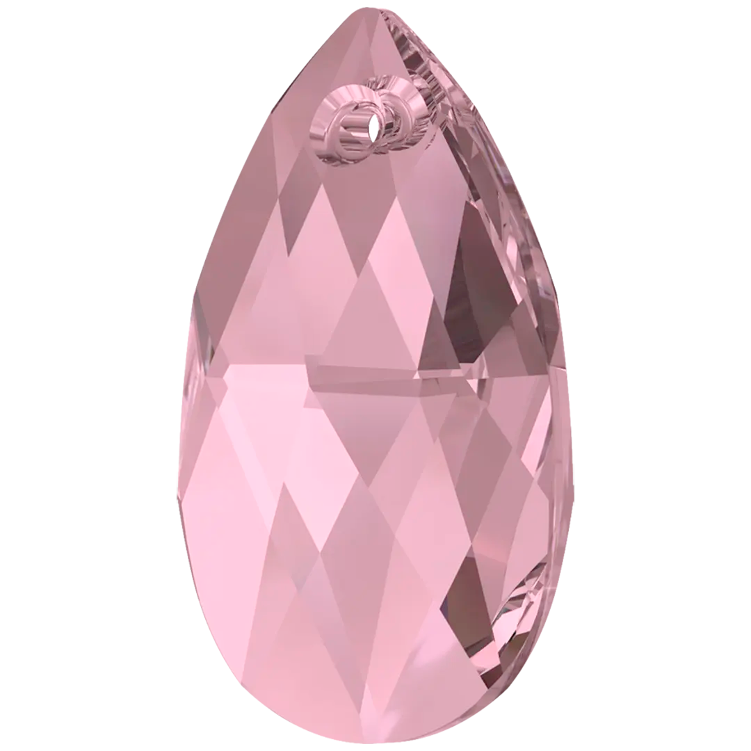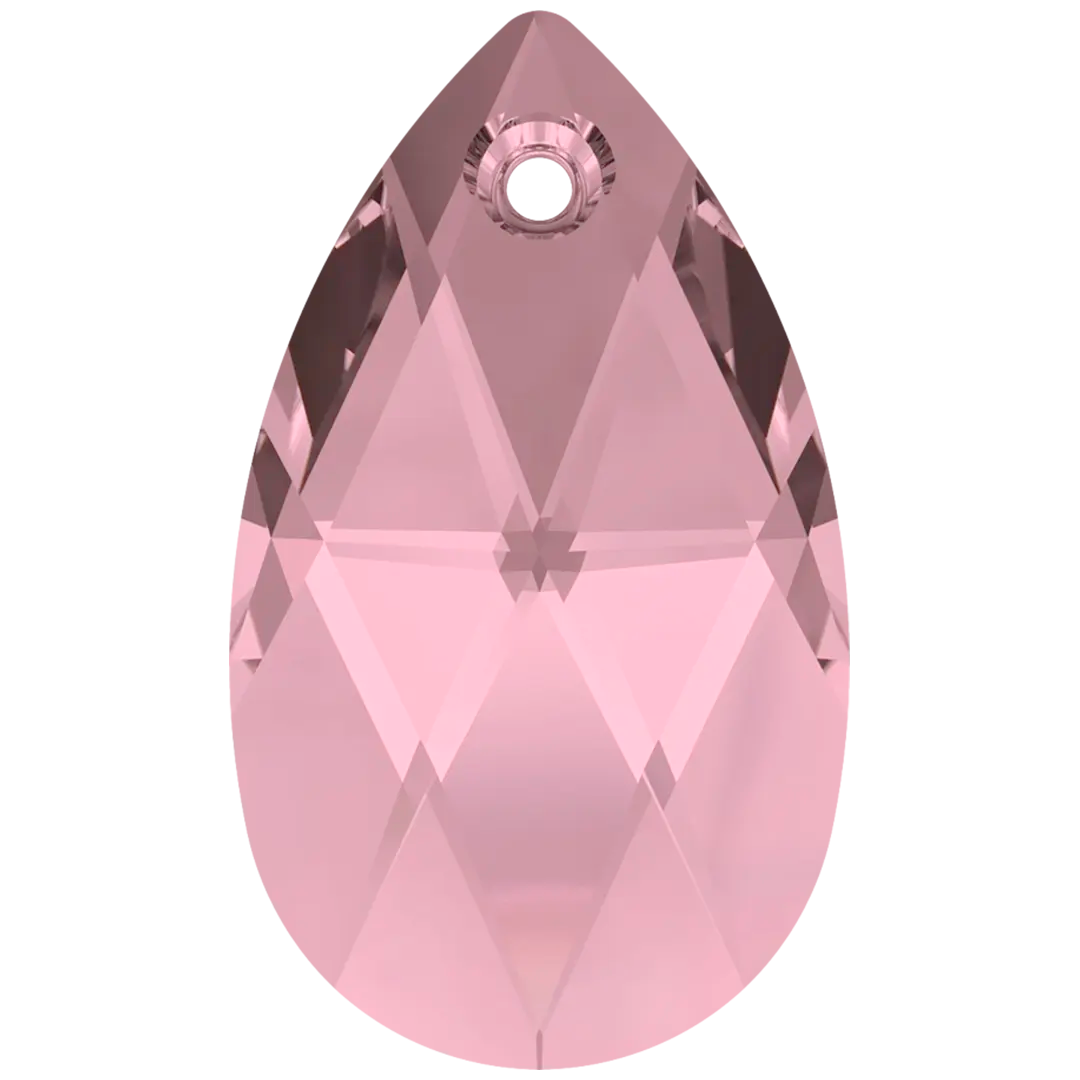 Swarovski pendants Peardrop (6106) in Crystal Antique Pink are multi faceted crystals with a thread hole at the top enabling them to be attached to a chain or finding to create a piece of jewellery. Swarovski Peardrop shaped crystals are traditional pear in shape with a rounded bottom and a pointed top. They have a symmetrical shape with a faceted surface that creates a brilliant shine and sparkle.