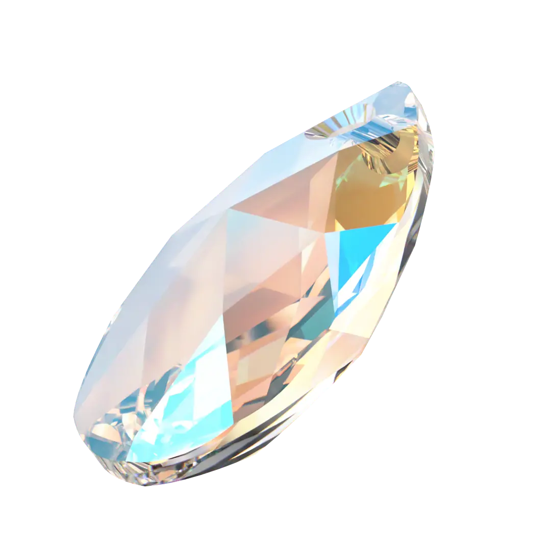 Swarovski pendants Peardrop (6106) in Crystal Shimmer are multi faceted crystals with a thread hole at the top enabling them to be attached to a chain or finding to create a piece of jewellery. Swarovski Peardrop shaped crystals are traditional pear in shape with a rounded bottom and a pointed top. They have a symmetrical shape with a faceted surface that creates a brilliant shine and sparkle.