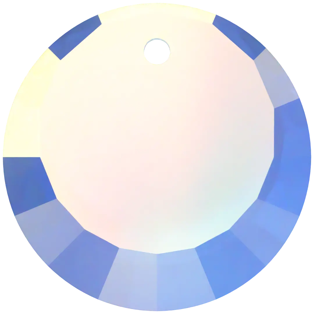 Swarovski pendants Lunar (6210) in Crystal AB are multi faceted crystals with a thread hole at the top enabling them to be attached to a chain or finding to create a piece of jewellery. Swarovski Lunar pendant is a flat, circular disc with a hole at the top for attaching to a chain or cord. Its regular side facets are designed to refract light beautifully, while the broader facets at the bottom create stunning brilliance.