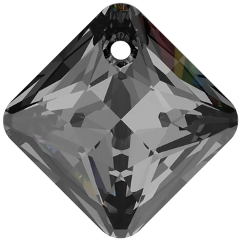 Swarovski pendants Princess Cut (6431) in Crystal Silver Night are multi faceted crystals with a thread hole at the top enabling them to be attached to a chain or finding to create a piece of jewellery. Swarovski Princess Cut pendants have a contemporary diamond cut that is characterised by its geometric, sharp square shape with angular, strong lines. It has four bevelled sides with a pyramidal shape and is a popular cut amongst Swarovski product ranges.