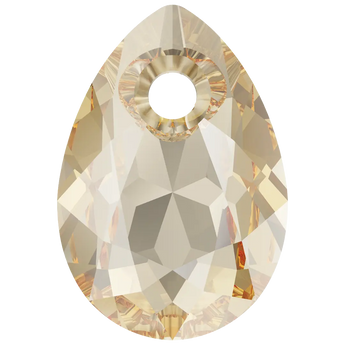 Swarovski pendants Pear Cut (6433) in Crystal Golden Shadow are multi faceted crystals with a thread hole at the top enabling them to be attached to a chain or finding to create a piece of jewellery. Swarovski Pear Cut shaped crystals are traditional pear in shape with a rounded bottom and a pointed top. They have a symmetrical shape with a faceted surface that creates a brilliant shine and sparkle.