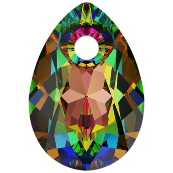 Swarovski pendants Pear Cut (6433) in Crystal Vitrail Medium P are multi faceted crystals with a thread hole at the top enabling them to be attached to a chain or finding to create a piece of jewellery. Swarovski Pear Cut shaped crystals are traditional pear in shape with a rounded bottom and a pointed top. They have a symmetrical shape with a faceted surface that creates a brilliant shine and sparkle.