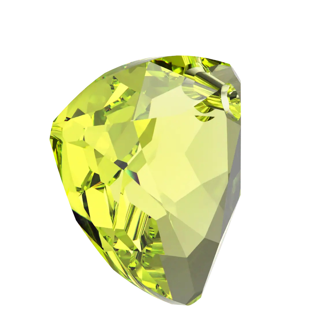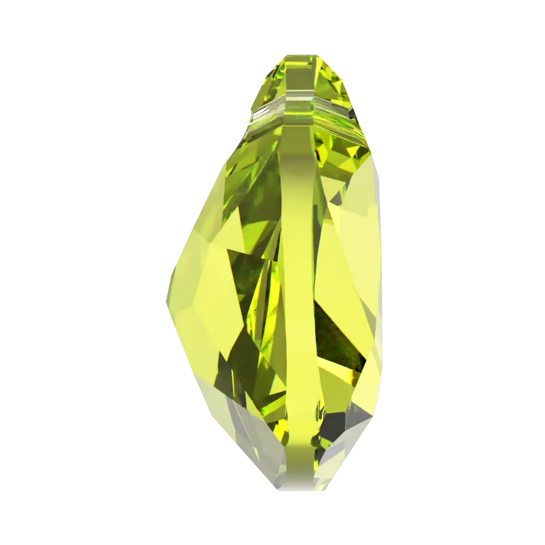 Swarovski pendants Trilliant Cut (6434) in Citrus Green are multi faceted crystals with a thread hole at the top enabling them to be attached to a chain or finding to create a piece of jewellery. Swarovski Trilliant Cut shaped crystal refers to a specific cut of crystal that is triangular in shape with rounded corners. It has a faceted surface that captures and reflects light beautifully, giving it a stunning sparkle.