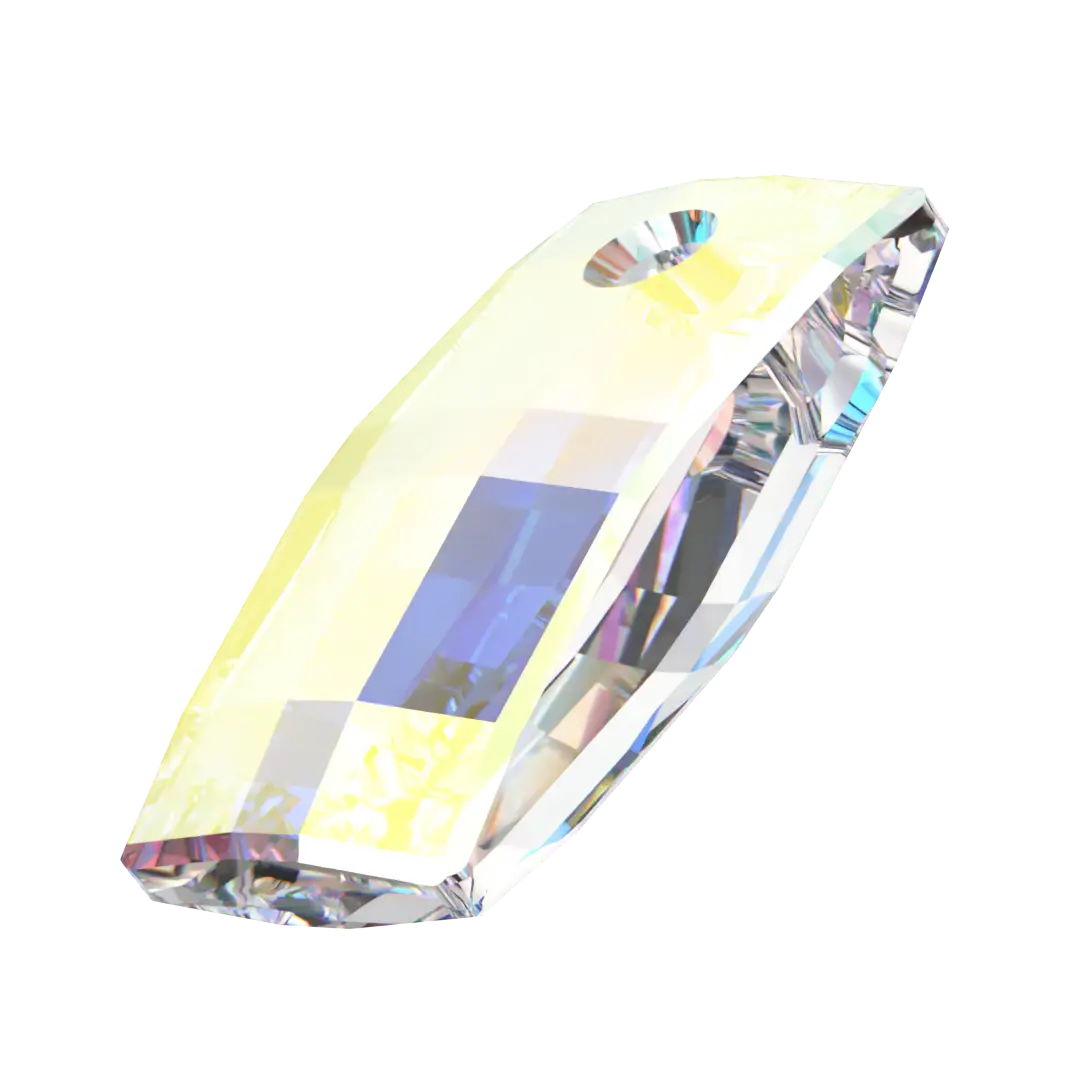 Swarovski pendants Urban (6696) in Crystal AB are multi faceted crystals with a thread hole at the top enabling them to be attached to a chain or finding to create a piece of jewellery. Swarovski Urban shaped pendant is rectangular in shape with a unique square faceting style. The urban pendant is perfect for creating more contemporary jewellery designs.