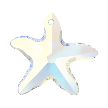 Swarovski pendants Starfish (6721) in Crystal AB are multi faceted crystals with a thread hole at the top enabling them to be attached to a chain or finding to create a piece of jewellery. Swarovski Starfish shaped pendant is a beautiful piece that captures the intricate details of a real starfish, with its arms extending outwards and its faceted surface reflecting light beautifully.