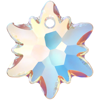 Swarovski pendants Edelweiss (6748) in Crystal AB are multi faceted crystals with a thread hole at the top enabling them to be attached to a chain or finding to create a piece of jewellery. Swarovski Edelweiss shaped pendant is a delicate and intricate design that captures the natural beauty of the edelweiss flower, a symbol of purity, courage, and devotion. The pendant features a faceted crystal centre surrounded by sparkling petals, creating a timeless and elegant look.